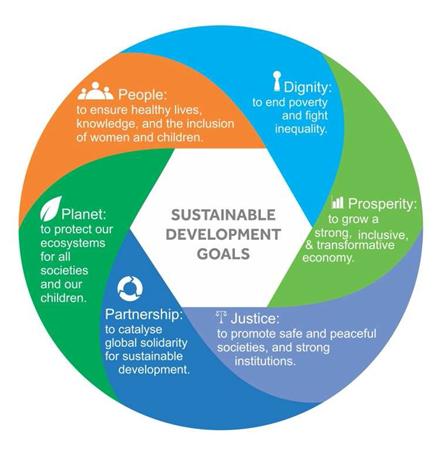 2) Introduction of six, new essential elements – The SG’s Report introduces six “essential elements” for delivering on the SDGs: dignity, people, prosperity, our planet, justice and partnership. These are new concepts. Figure 1 below (from the Secretary General's Post-2015 report) expands on these essential elements: